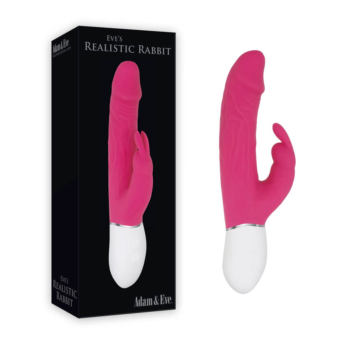 "Realistic Rabbit" é um ótimo vibrador recarregável 2 em 1 (rabbit) para estimular o ponto g e o clitóris da linha "Adam & Eve", desenvolvido pela "Evolved Love is Back", ele é todo confeccionado em silicone macio e sedoso de toque aveludado para não machucar e agredir a pele durante a utilização do produto, conta ainda com 2 motores extremamente potentes que podem ser controlados separadamente e garante até 81 combinações. Possui formato de prótese realística com glande definida, veias salientes para uma penetração mais realística e 9 modos de vibração que são perfeitos para variar e estimular varias áreas erógenas do corpo.
