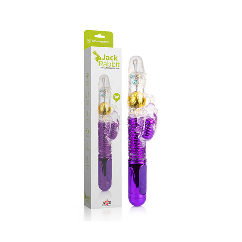 Vibrador "Jack Rabbit", feito em silicone e ABS no formato de pênis realístico com cerdas estimuladoras, movimento vai e vem e rotação em 360° graus. Acompanha um estimulador de clitóris em forma de borboleta com 36 vibrações e carregamento via cabo USB. Confira a descrição completa e saiba mais!