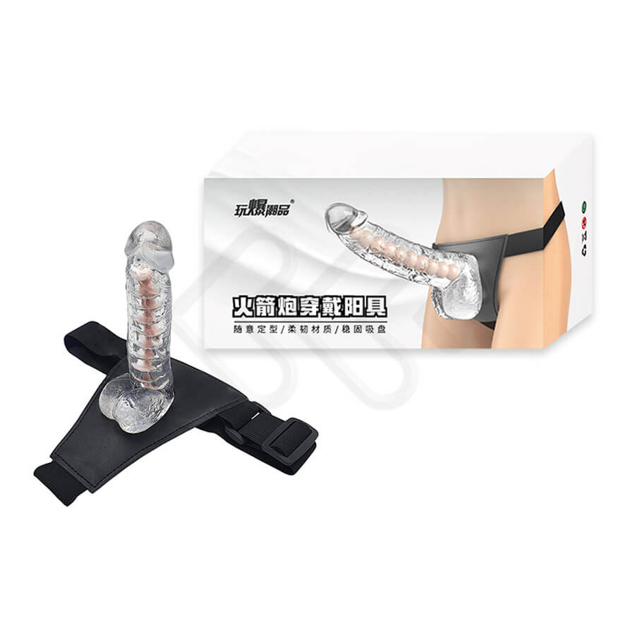 Cinta peniana ajustável, feita em couro sintético com ajustes nas alterais e elastano. Acompanha uma prótese realística vertebrada com escroto e base em ventosa.