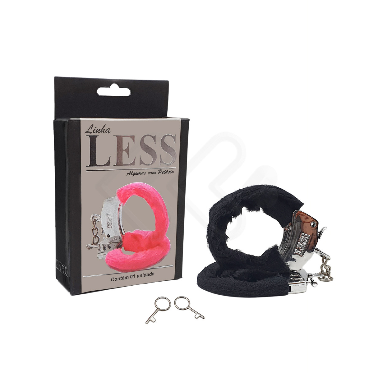 Par de algemas cromadas, trabalhadas em ABS metalizado e cobertas com pelúcia. Acompanha trava de segurança interna e 2 chaves para abertura da peça. Confira!