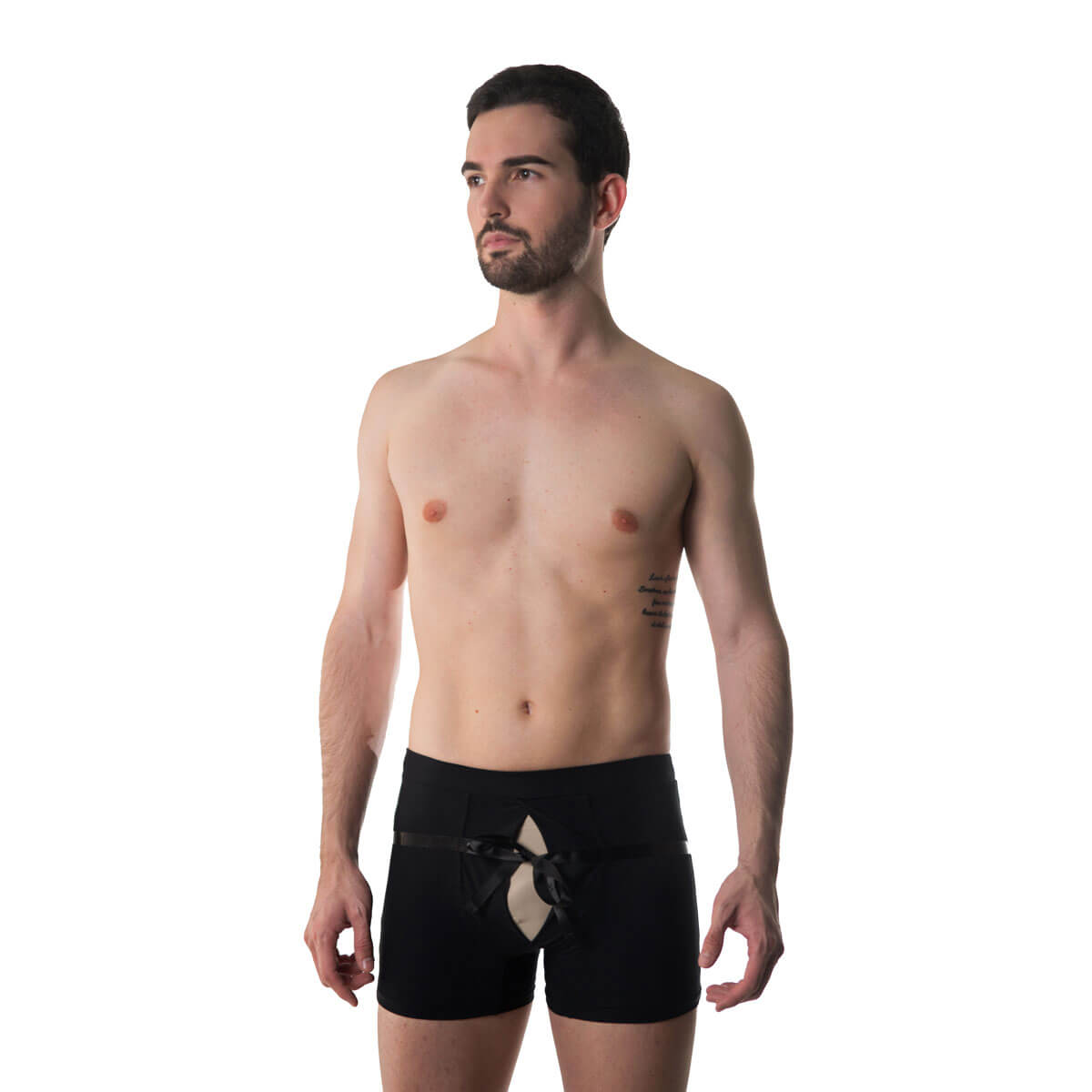 Cueca boxer em microfibra com abertura frontal, permitindo que você use durante o sexo. Chega mais!