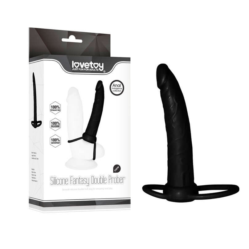 Anel companheiro para duplas penetrações com alça flexível para o pênis e para o escroto. O pênis tem glande saliente e textura de veias ao longo do corpo!