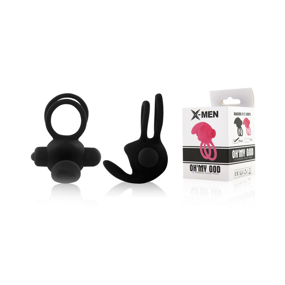 Anel Peniano duplo para pênis e escroto com estimulador clitoriano com 10 tipos de vibrações potentes (ui!) e resistente à água!