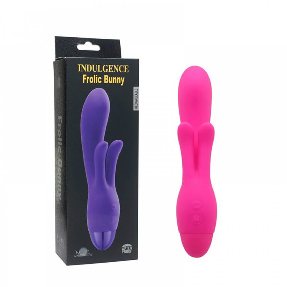Estimulador duplo com formato de orelhas de coelho. Perfeito para ocasionar orgasmos deliciosos através da vibração feita no estimulador.