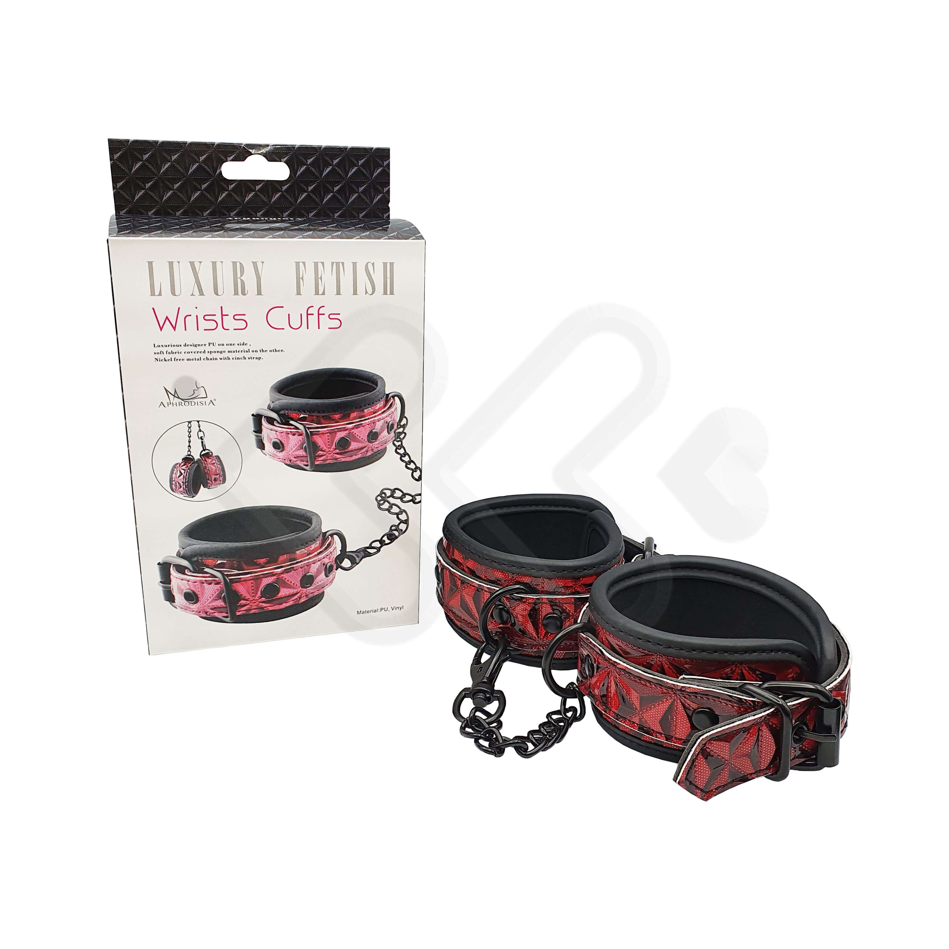 Divirta-se com as algemas wrists cuffs que possui correntes e fivelas, podem ser usadas como tornozeleiras também. Possui corrente de metal de 19 cm.
