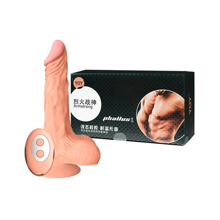 Pênis realístico recarregável com glande definida, veias, escroto e ventosa. Possui 6 modos de vibração e rotação e revolucionária tecnologia de auto aquecimento.