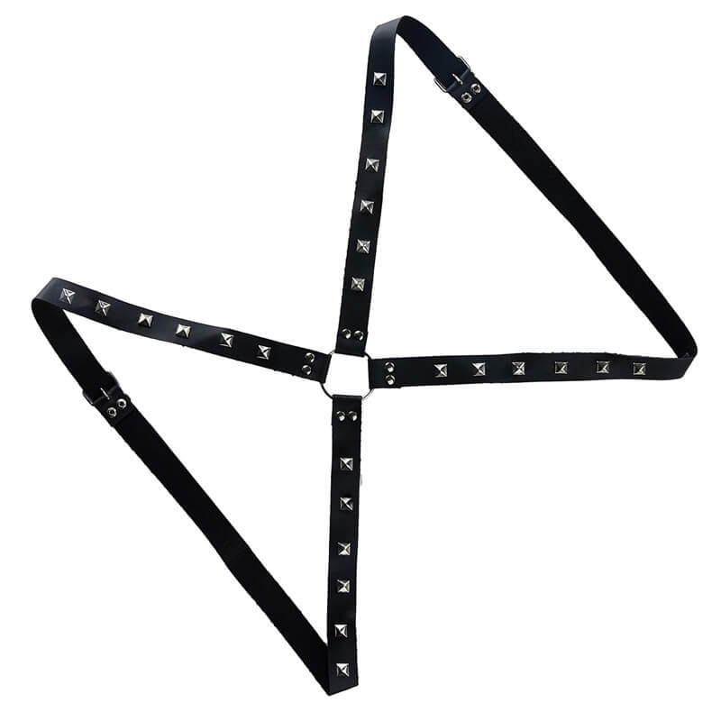 Arreio masculino "Brasil Fetiche" feito em couro sintético com spike pirâmide, fivela ajustável e argola central em metal ideal para travar novas correntes.