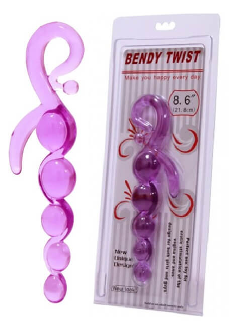Plug anal com 5 esferas em tamanhos gradativos e estimulador lateral, todo confeccionado em jelly na cor rosa, com alça para manuseio.