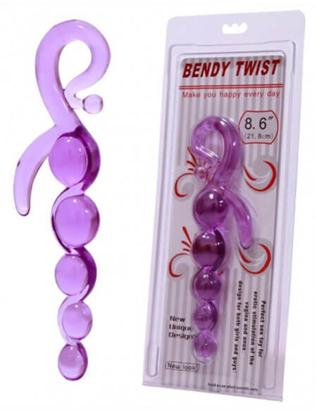 Plug anal com 5 esferas em tamanhos gradativos e estimulador lateral, todo confeccionado em jelly na cor roxa, com alça para manuseio.
