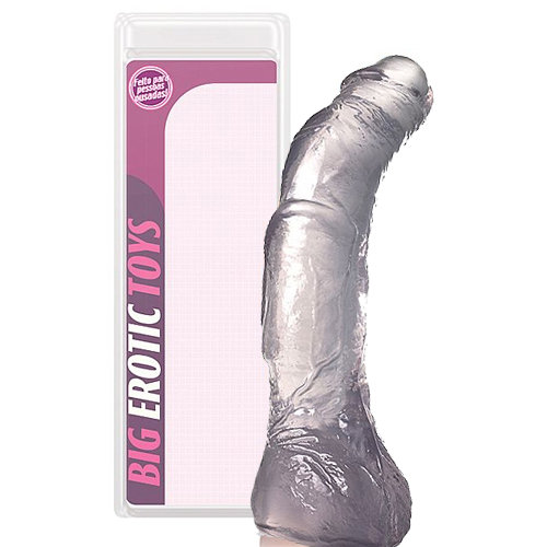 Prótese realística Monster curvada para a esquerda com escroto, glande definida e veias salientes.