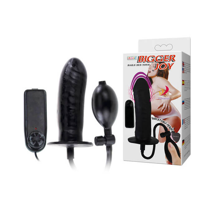 Plug inflável em formato de pênis realístico com pêra de bombeamento e vibração multivelocidade, ui! Chega mais!