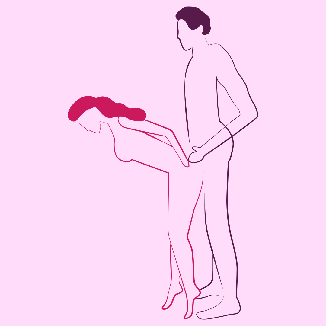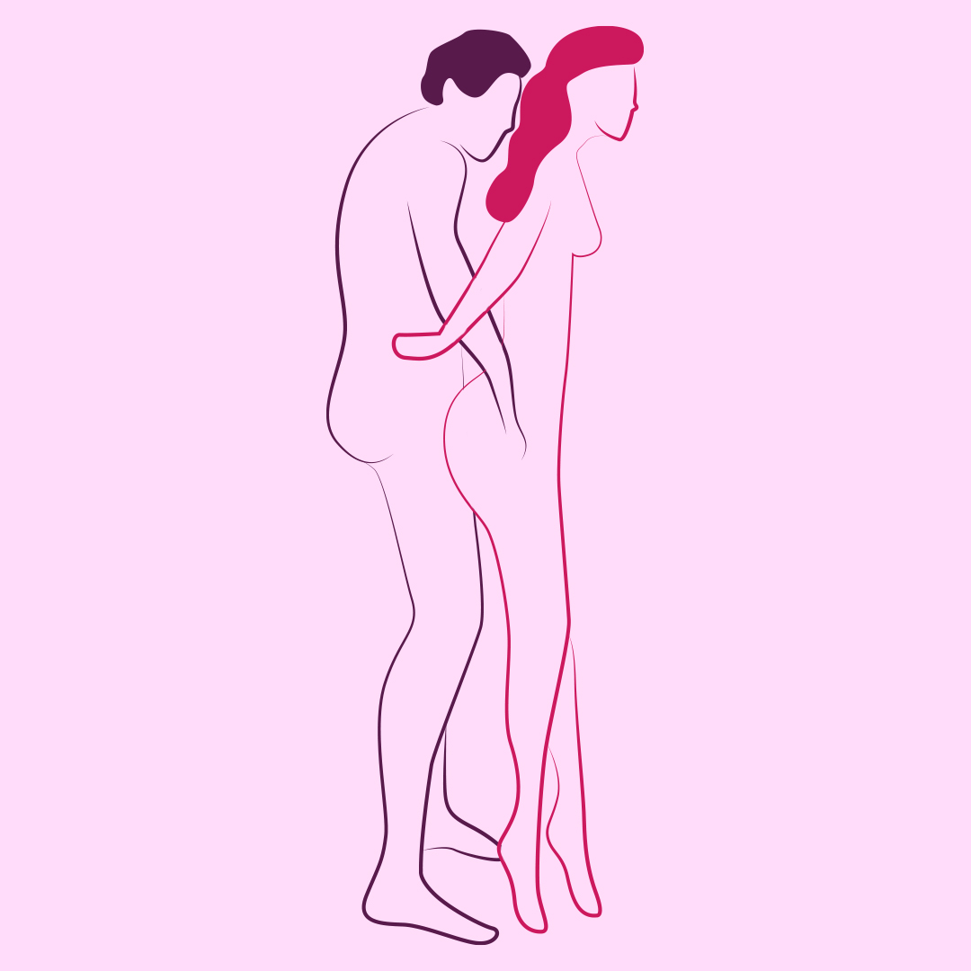 Com o mesmo princípio de foco na penetração como na posição anterior, mas aqui a ideia é ficar mais distante da parceria. A pessoa da frente pode inclusive se apoiar com cuidado na parede, empinar a bunda, rebolar e aproveitar enquanto a pessoa atrás realiza a penetração.