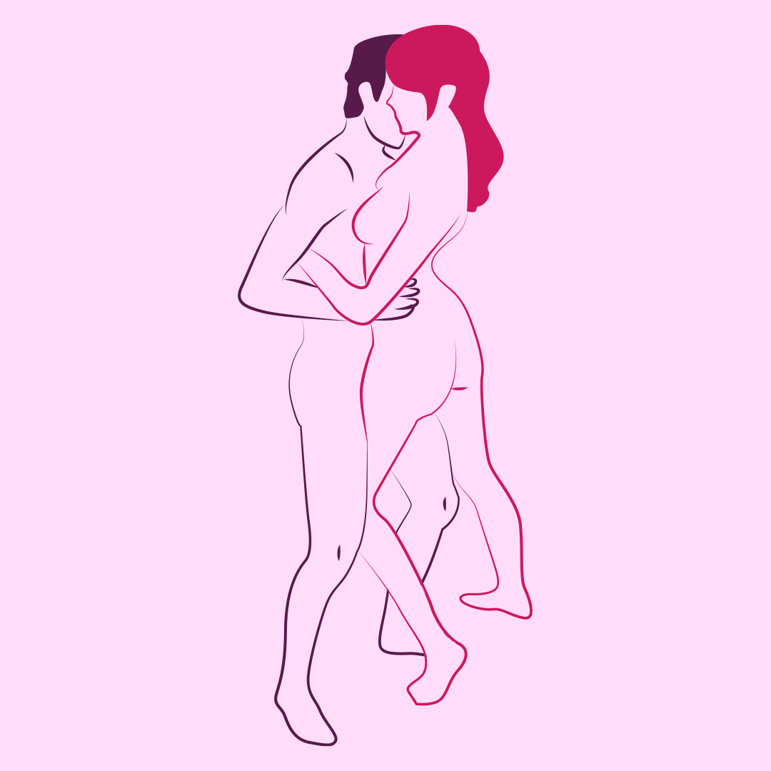 Se você não quer abrir mão da penetração mesmo de pé e ainda assim quer ficar bem junto com a parceria, sentindo o corpo todo molhado, essa é uma ótima opção! A penetração é por trás, com a pessoa que vai ser penetrada na frente, ótima também para sexo anal.
