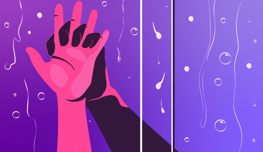 Ele me abraça e a água quente cai sobre nós dois,