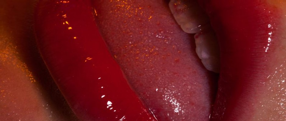 ele desce e sobe a língua no clitóris enquanto assiste ela encontrar o orgasmo