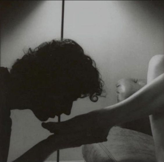 sentado na cadeira da mesa onde acabou de comer, assiste os pés gozados pisarem nos cacos enquanto ela tenta resgatar as flores.