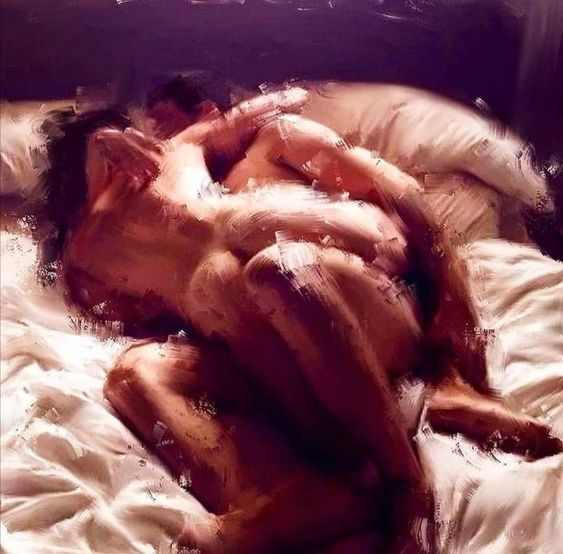 ele se aproxima de mim, curva-se pra alcançar meu rosto, e beija lentamente meu rosto.