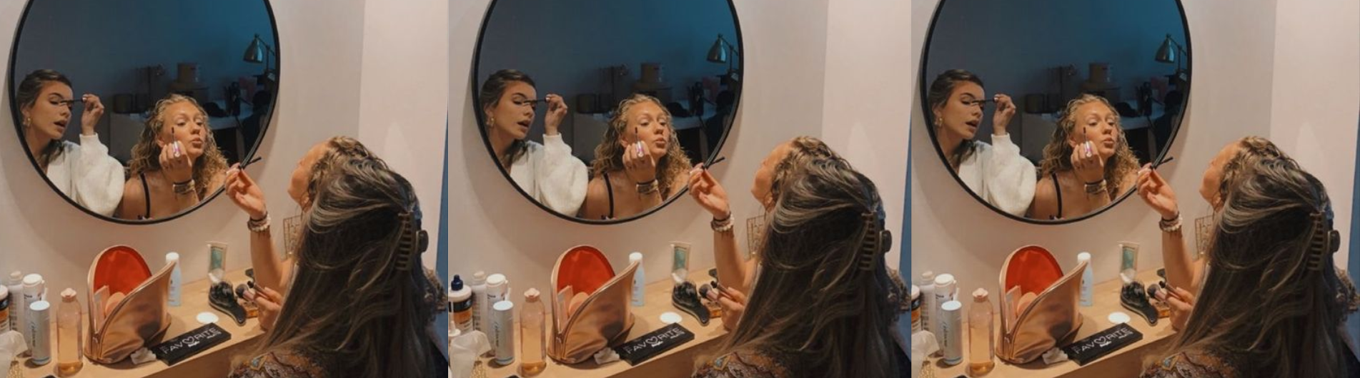 Começamos a fazer o básico da maquiagem, cantando, rindo e conversando, até que fui fazer meu delineado e quase surtei: