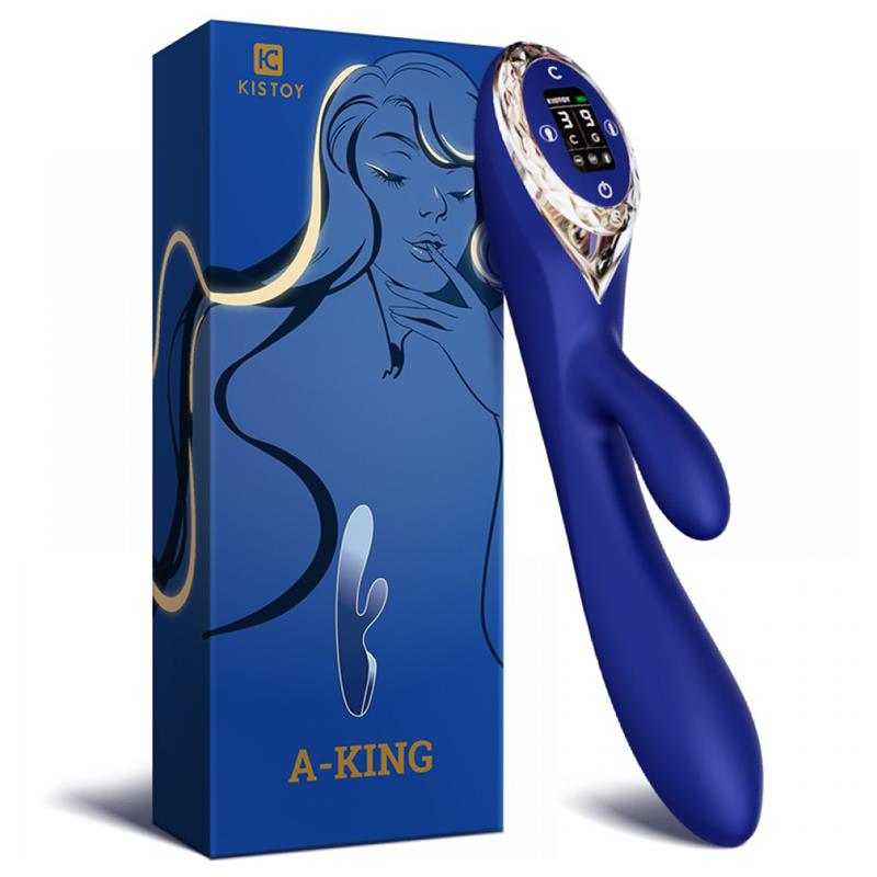 Este belíssimo vibrador azul royal é inflável, recarregável e com estimulador de clitóris. Tem um painel de led com dois motores de vibração, legal né? É o KISTOY A-KING.