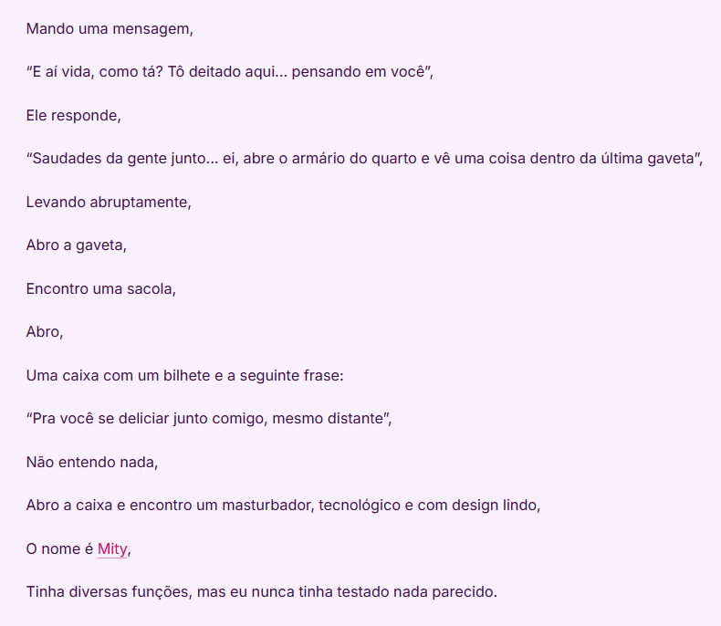 Nas histórias teve BDSM, ménage, sexting, história de app de relacionamento, encontro em chá de bebê, surpresa pra mãe, amigas de rolê, fantasia em um sonho de época, cantor de uma banda, reencontro com amigo de infância, sexo em lugar proibido, inversão, camgirl, sexo por telefone, alguns com mais romance e muito mais! Com certeza alguns vão tocar muito mais que o seu coração...