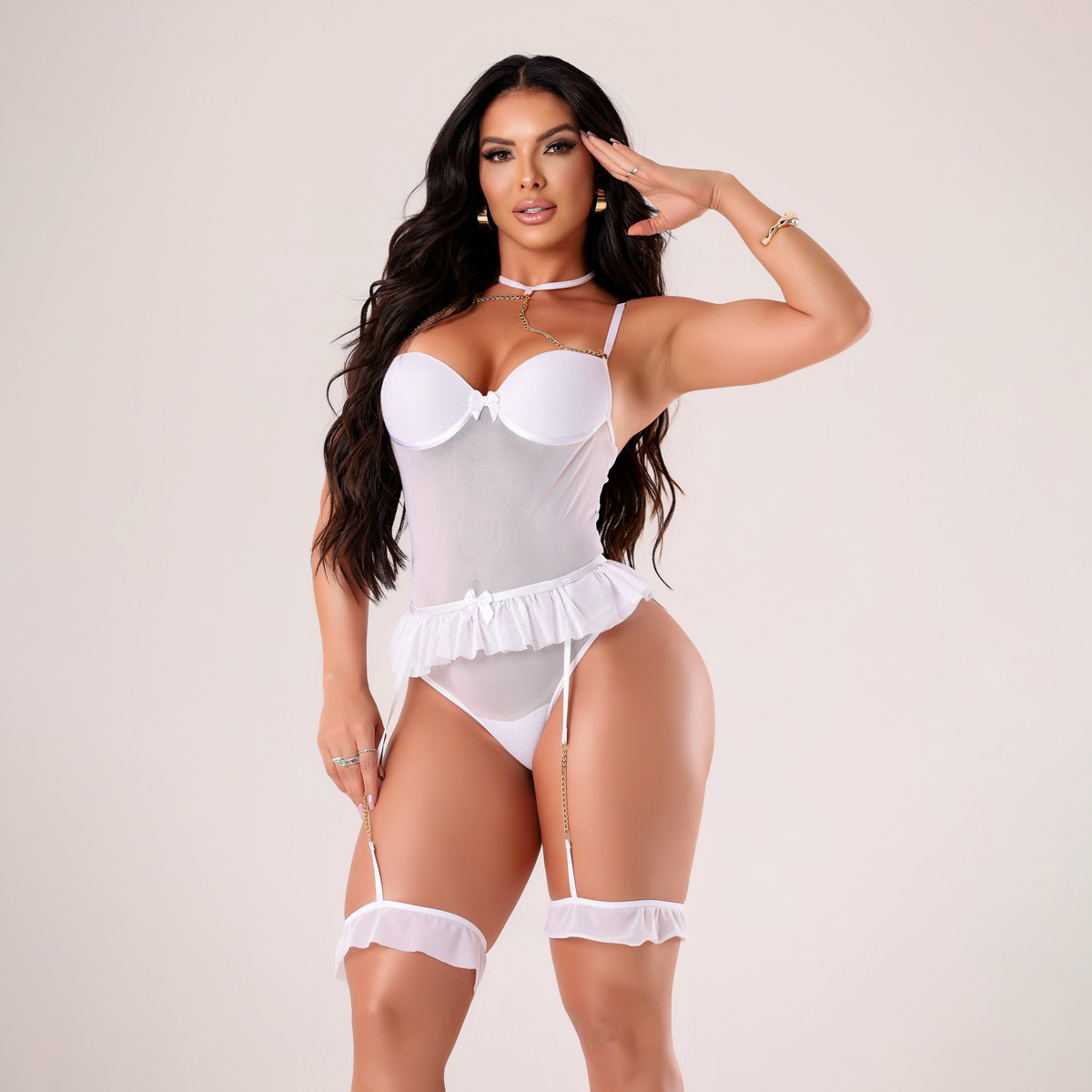 Body com Detalhes em Renda, Bojo, Luvas e Máscara Tiazinha - Exclusiva Lingerie | Disponível em 4 Tamanhos