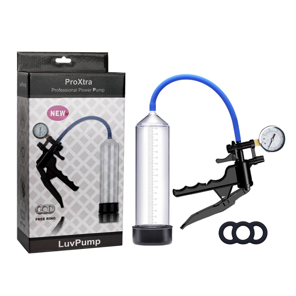 Essa bomba peniana da LuvPump é tudo de boom! Manual, ela é toda trabalhada em ABS atóxico com tubo transparente, anel em silicone, gatilho para bombeamento e anel peniano. Além disto ela acompanha uma válvula de descompressão do ar, que solta o ar sem machucar o pênis! Confira!
