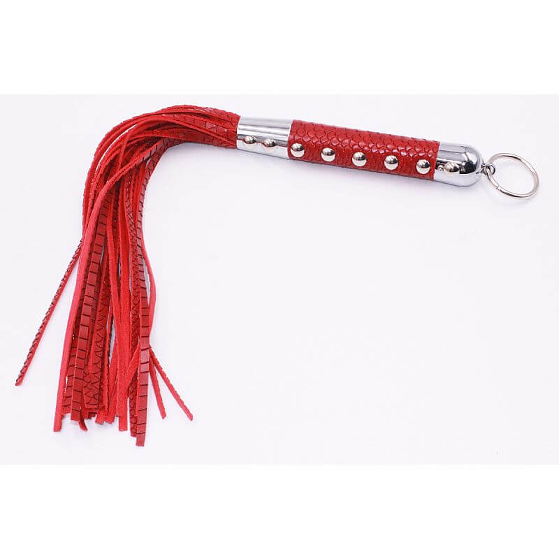 Chicote confeccionado em couro sintético com cabo que possui aparência premium.