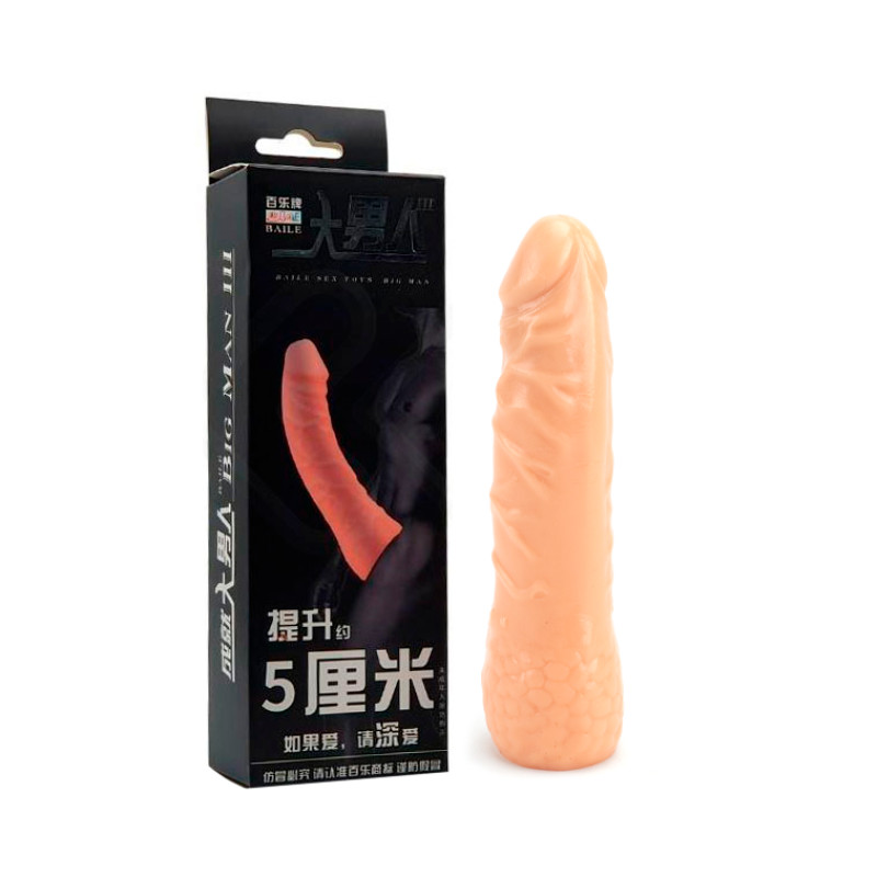 Capa peniana extensora feita em TPR com ponta preenchida, ou seja, maciça e firme, com glande definida, textura de veias e saliências estimuladoras!