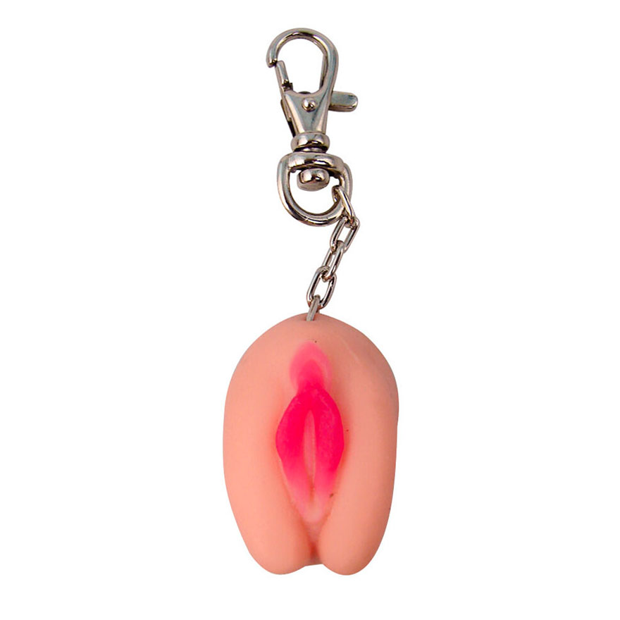 Chaveiro erótico em formato de mini vagina confeccionado em PVC atóxico, disponível na cor pele com os "lábios" rosados!