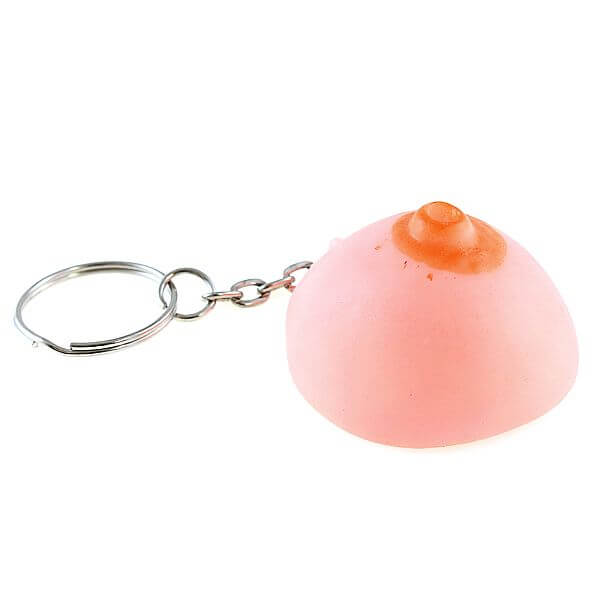 Chaveiro erótico em formato de seio que simula o leite materno saindo.