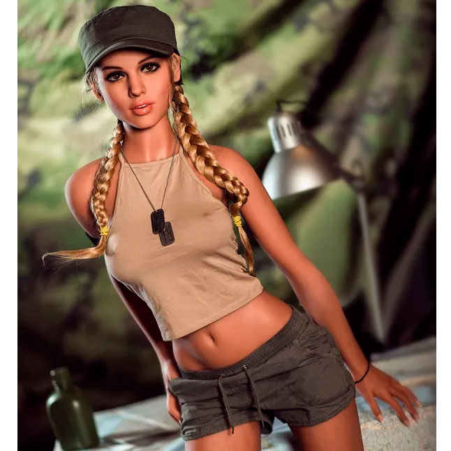 Olá, a boneca não fica de pé, somente deitada e sentada, não indicamos que coloque qualquer tipo de fita adesiva, pois vai danificar o cyberskin, essa rosca seria mesmo para encaixar a cabeça, basta rosquear .