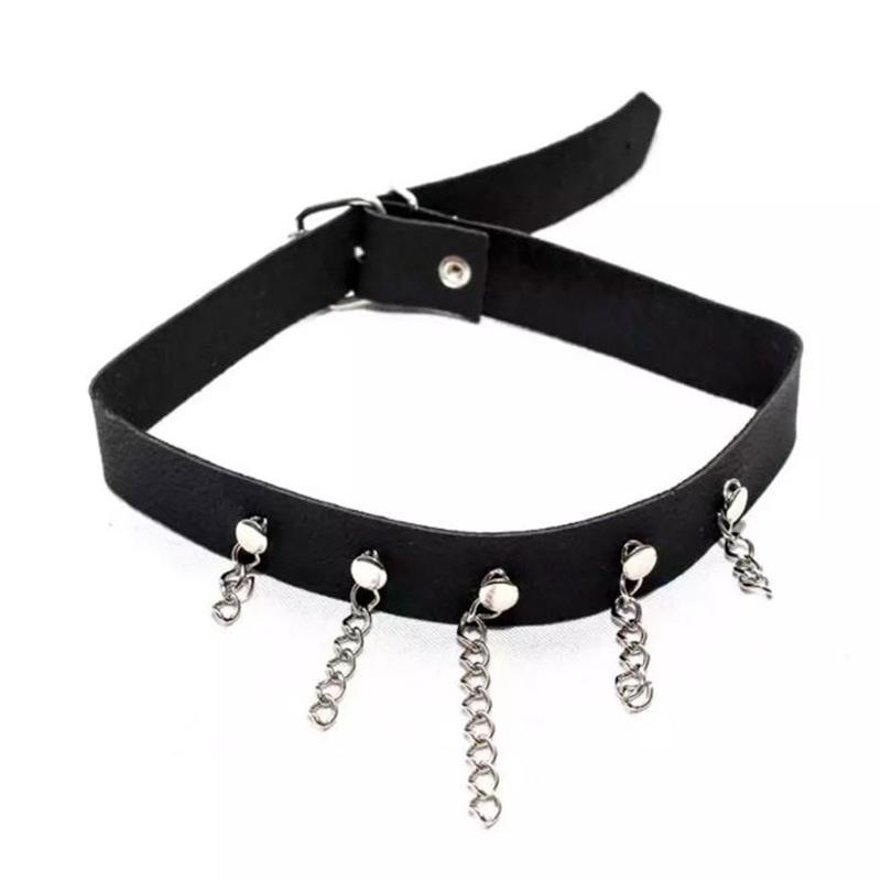 Coleira com fivela ajustável e detalhes de corrente. Não deixe de experimentar!