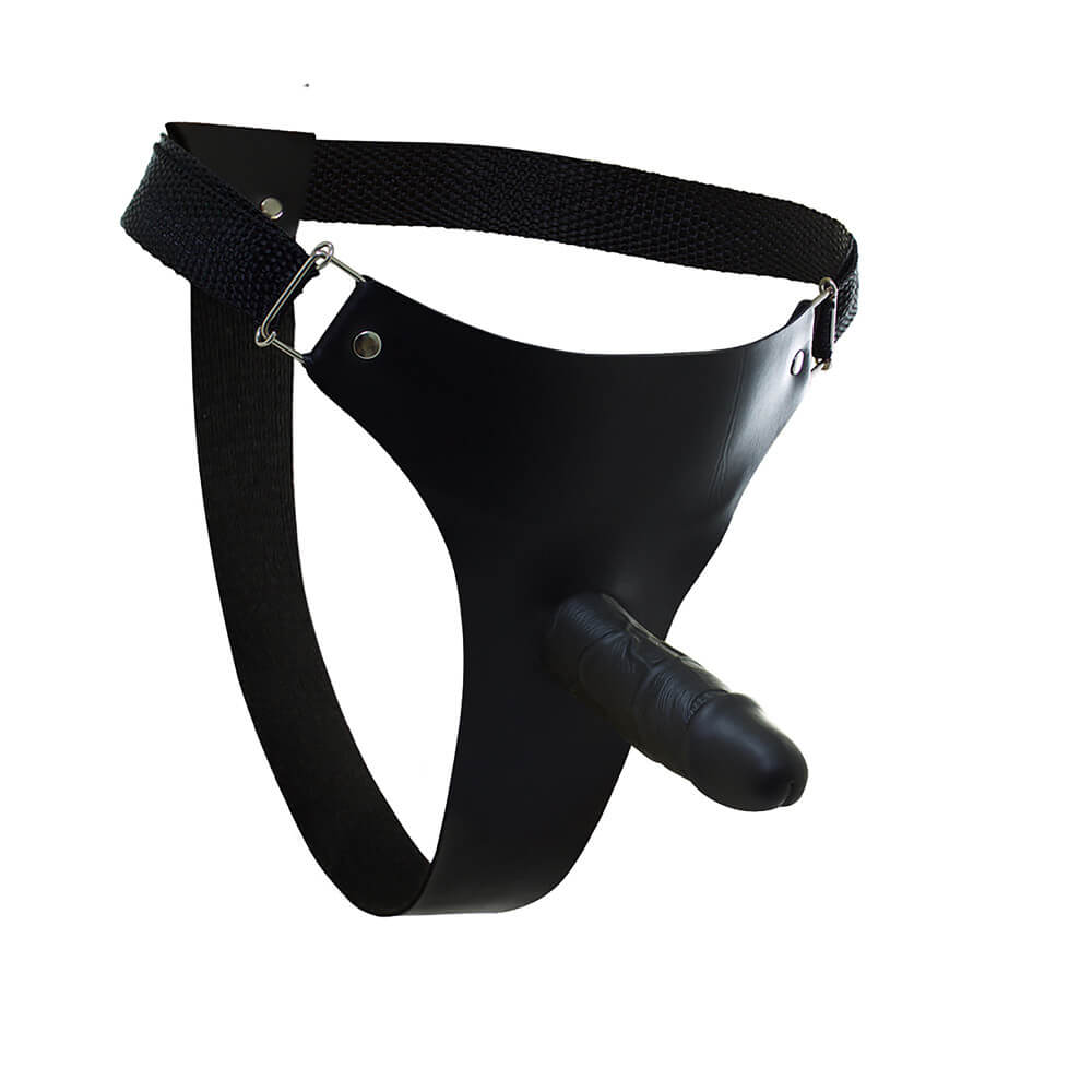 Cinta peniana feita de couro sintético com ajuste e pênis ultrarealístico de silicone, fixado à cinta, com glande bem definida e veias salientes. Completa e perfeita.
