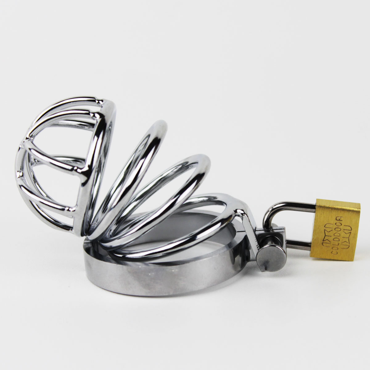 Cinto de castidade masculino, no formato de gaiola com anel para escroto! Feito em aço cromado ele é a opção ideal para a prática da dominação e submissão. Confira!