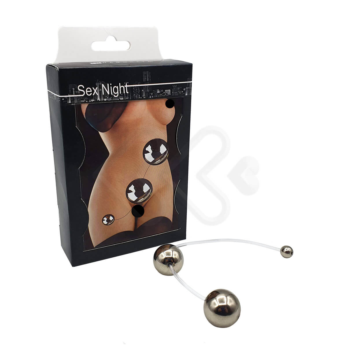 Colar tailandês composto por 2 esferas feitas em metal leve, presas ao um cordão em silicone, que juntos garantem diversos benefícios dentro da prática do pompoarismo.