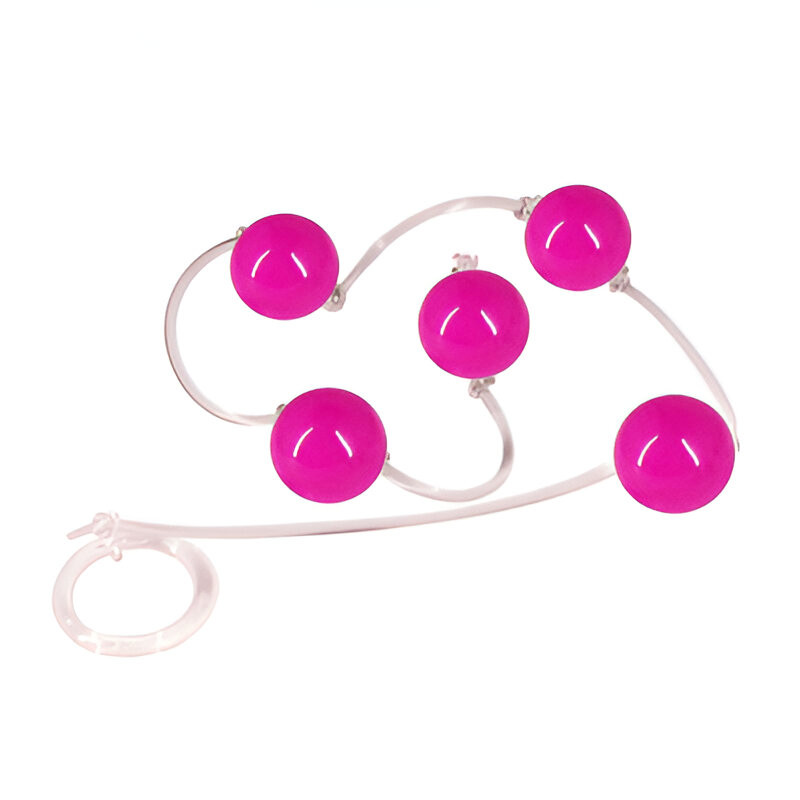 Colar com 5 bolas feitas em material atóxico ligadas por cordão de silicone que podem ser usadas tanto para prazer anal quanto para exercícios de pompoarismo.