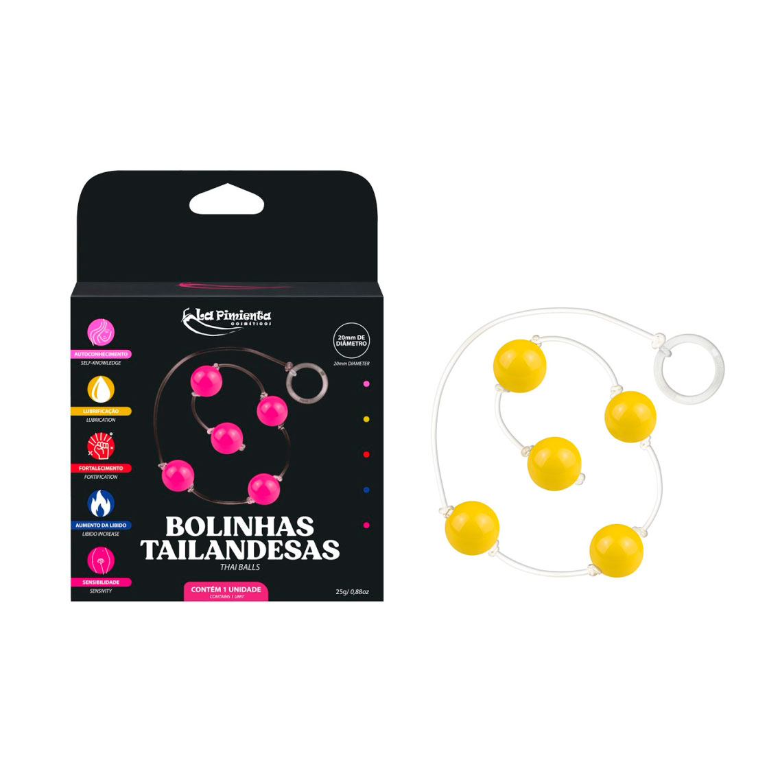 Colar tailandês com 5 bolinhas Plásticas, cordão em silicone e alça de segurança acrílica! Perfeito para a praticar a técnica de pompoarismo estimulando a vagina ou o ânus! Desce aqui que eu te conto tudo sobre ele!