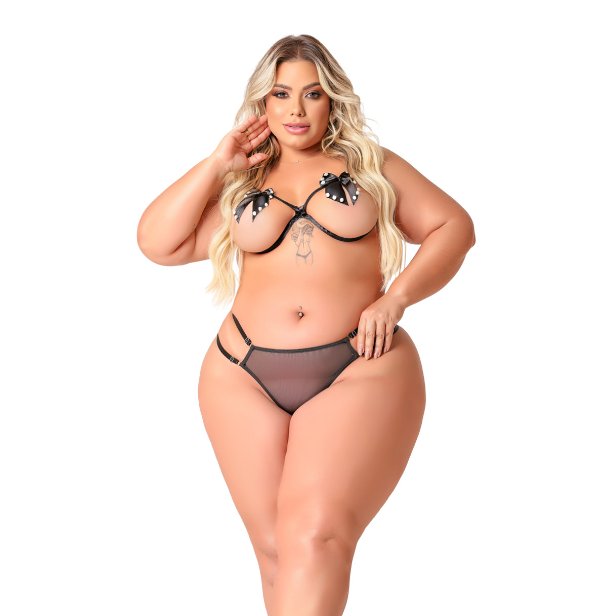 O Conjunto Beijo Borboleta com Lacinhos, é feito em aro de sustentação com cetim e lacinhos com pérolas que dão um charme ao modelo. A calcinha é fio dental em tule com lateral de alças dupla e detalhe de lacinho na parte de trás. Vem que te mostro, tudo!