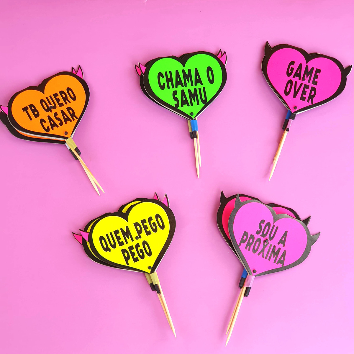 Decore os docinhos da despedida de solteira com os espetinhos coração neon! Contam com frases divertidas, além de brilharem na luz negra. Vem saber mais sobre essa novidade maravilhosa :B