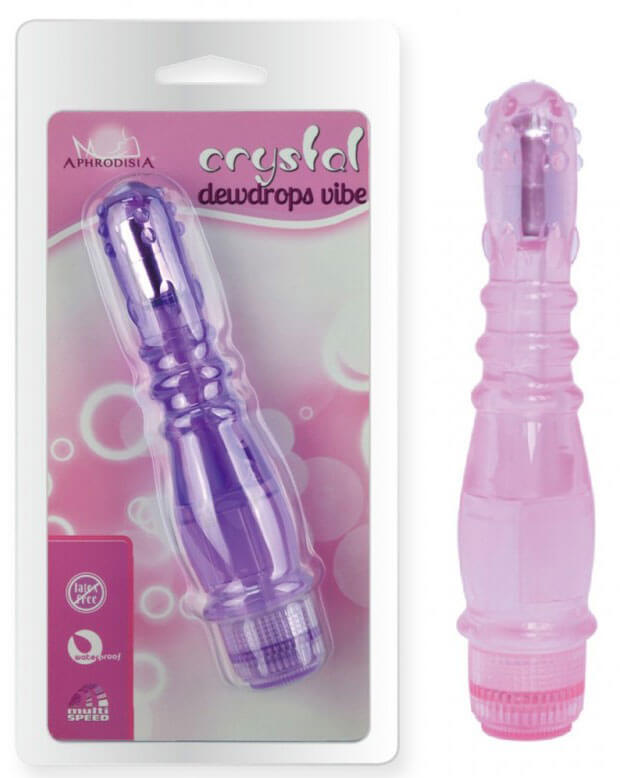 Vibrador estimulador de Ponto G confeccionado em Jelly, com nódulos estimuladores na ponta, textura anelada na parte central e cápsula vibratória interna.