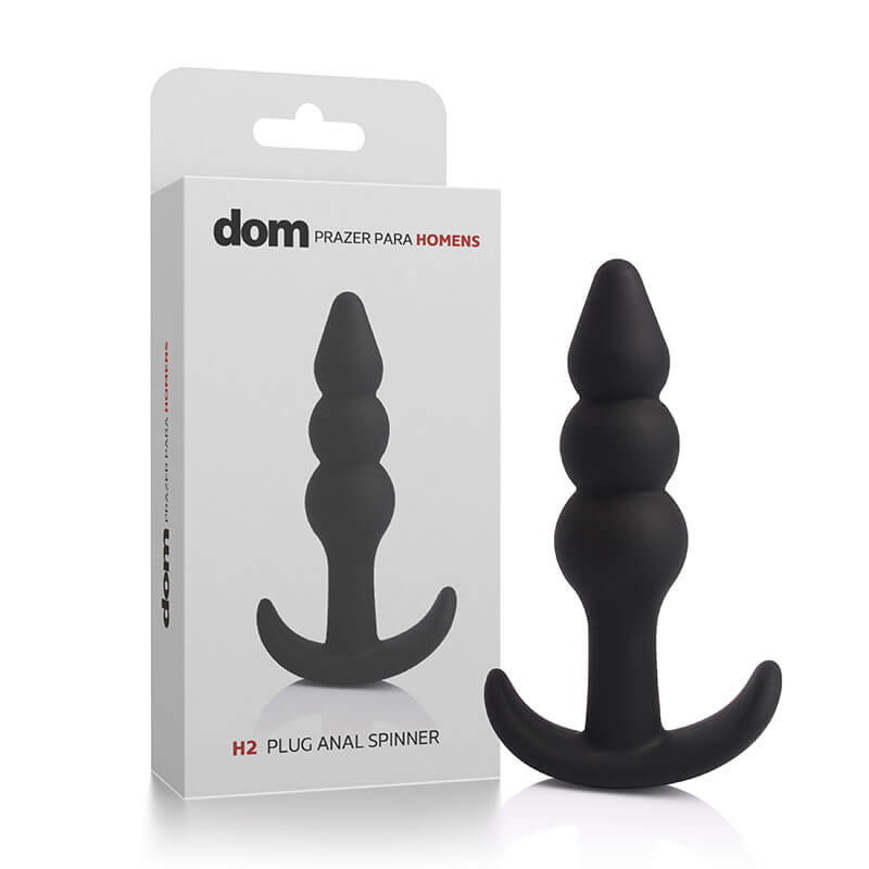 Plug anal escalonado feito em material macio e com alça, para maior segurança e prazer.