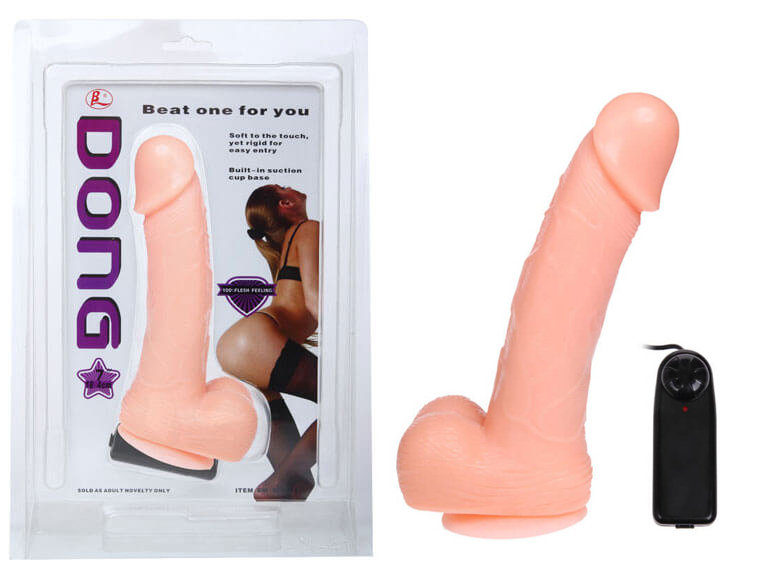Prótese peniana realística em PVC com glande definida, veias ultra salientes, escroto, movimentos de rotação e vibração potente controlada por controle.