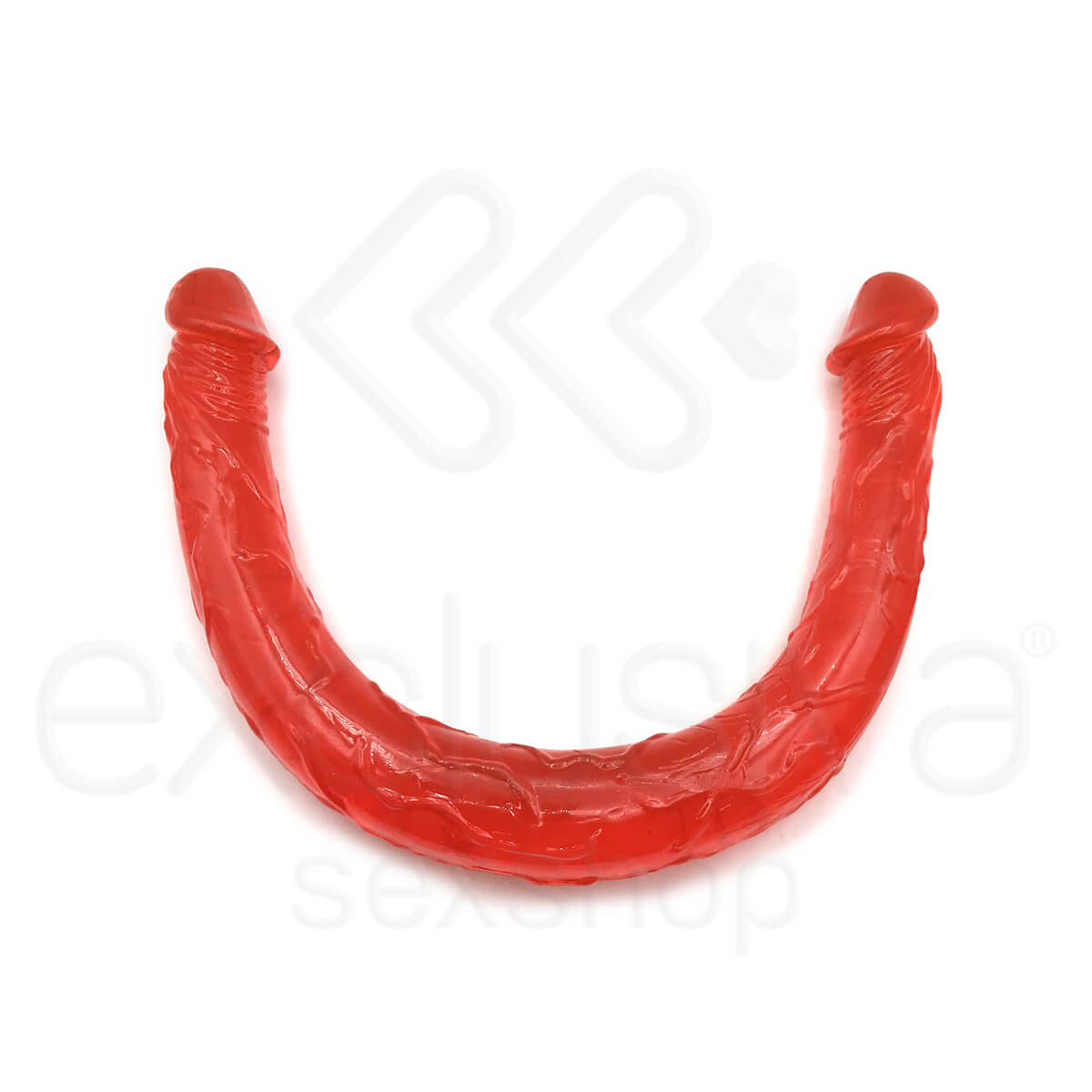 Pênis realístico de ponta dupla que possui textura de veias salientes e glande definida, proporcionando maior prazer.