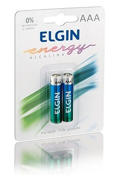 Pilhas alcalinas AAA indicadas para aparelhos que demandam uma grande descarga de energia, não possuem efeito memória (não é recarregável) e têm alta vida útil.