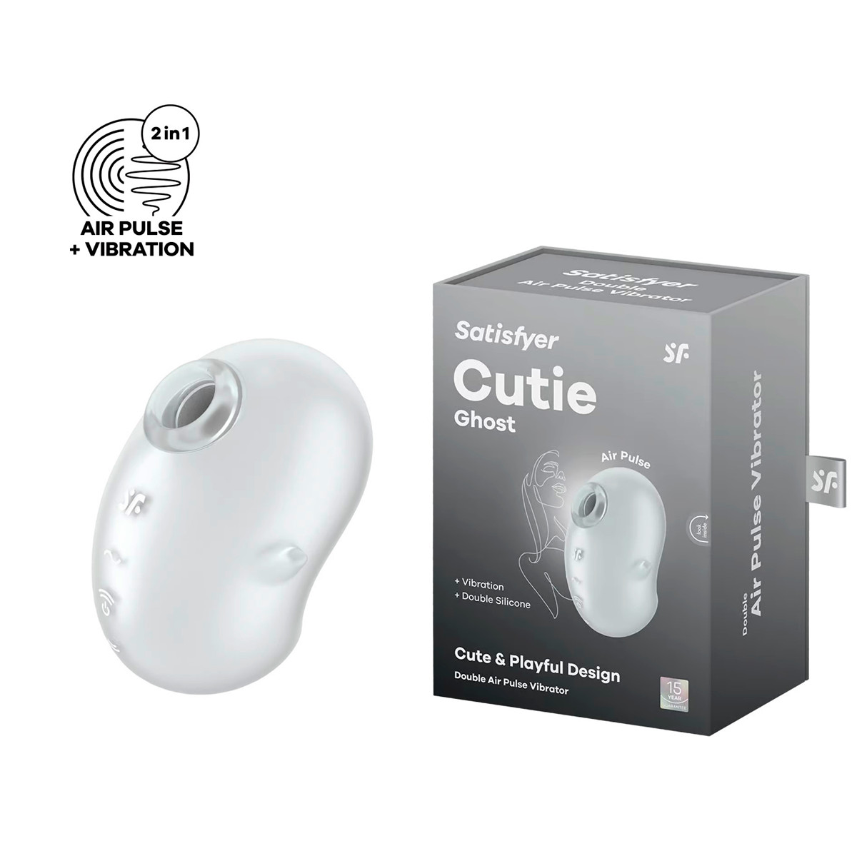 O Cutie Ghost oferece 11 intensidades de ondas de pressão e 12 modos de vibração, garantindo uma experiência única. Seu design lúdico em silicone macio, silencioso e resistente à água, proporciona prazer discreto e seguro. Saiba mais!