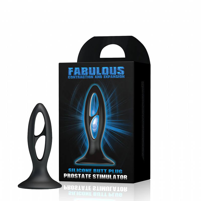 Estimulador de próstata flexível com ventosa e formato oval confeccionado em silicone.