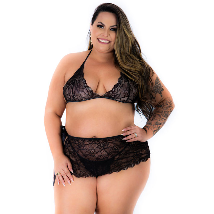 Mini fantasia Assanhadinha composta por sutiã, mini saia e calcinha fio dental, produzidas em renda transparente! Vem conhecer essa novidade maravilhosa, vem!