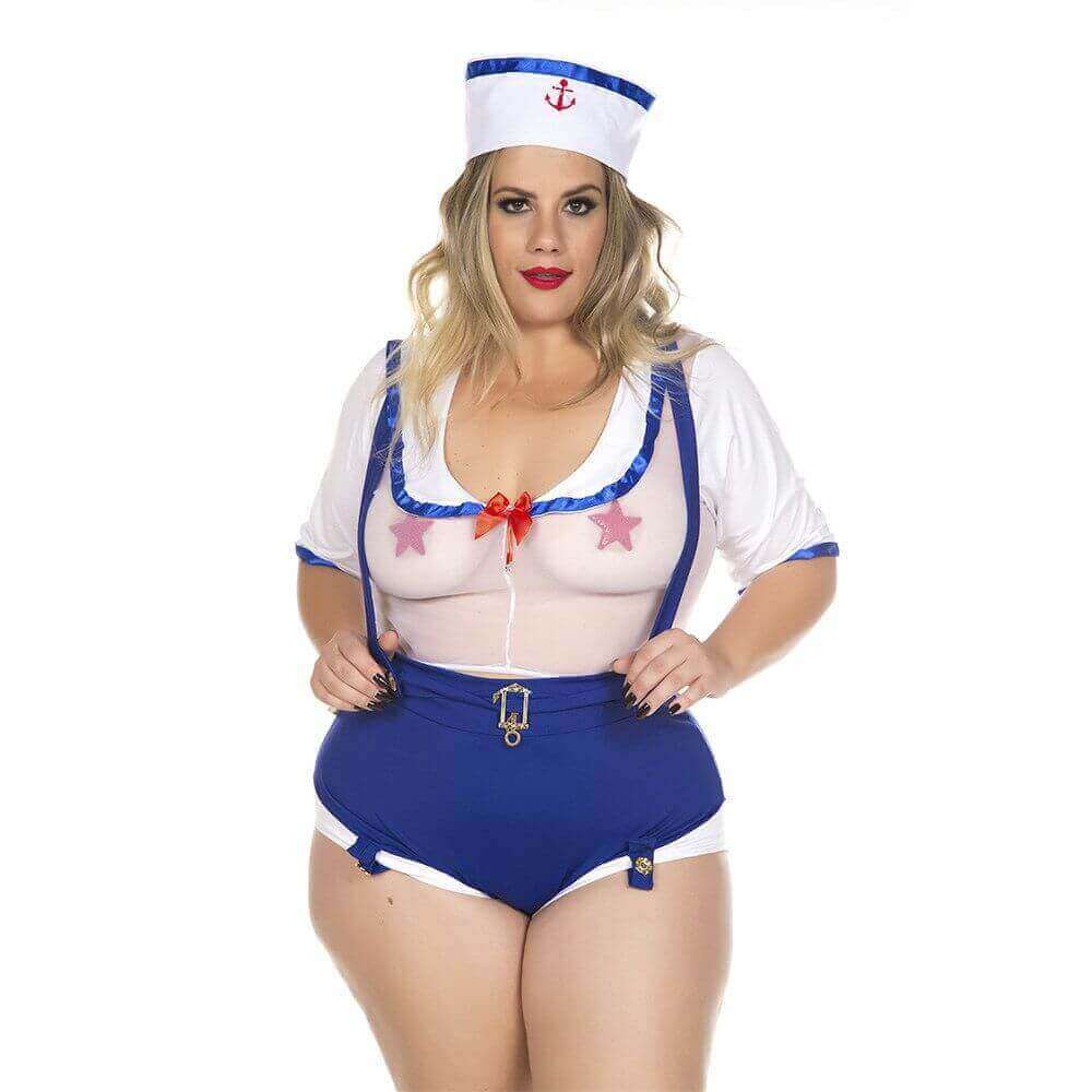 Fantasia de Comandante composta por boina, blusinha, short hot pant com suspensório. Ideal para mulheres que não tem medo de navegar por águas perigosas.