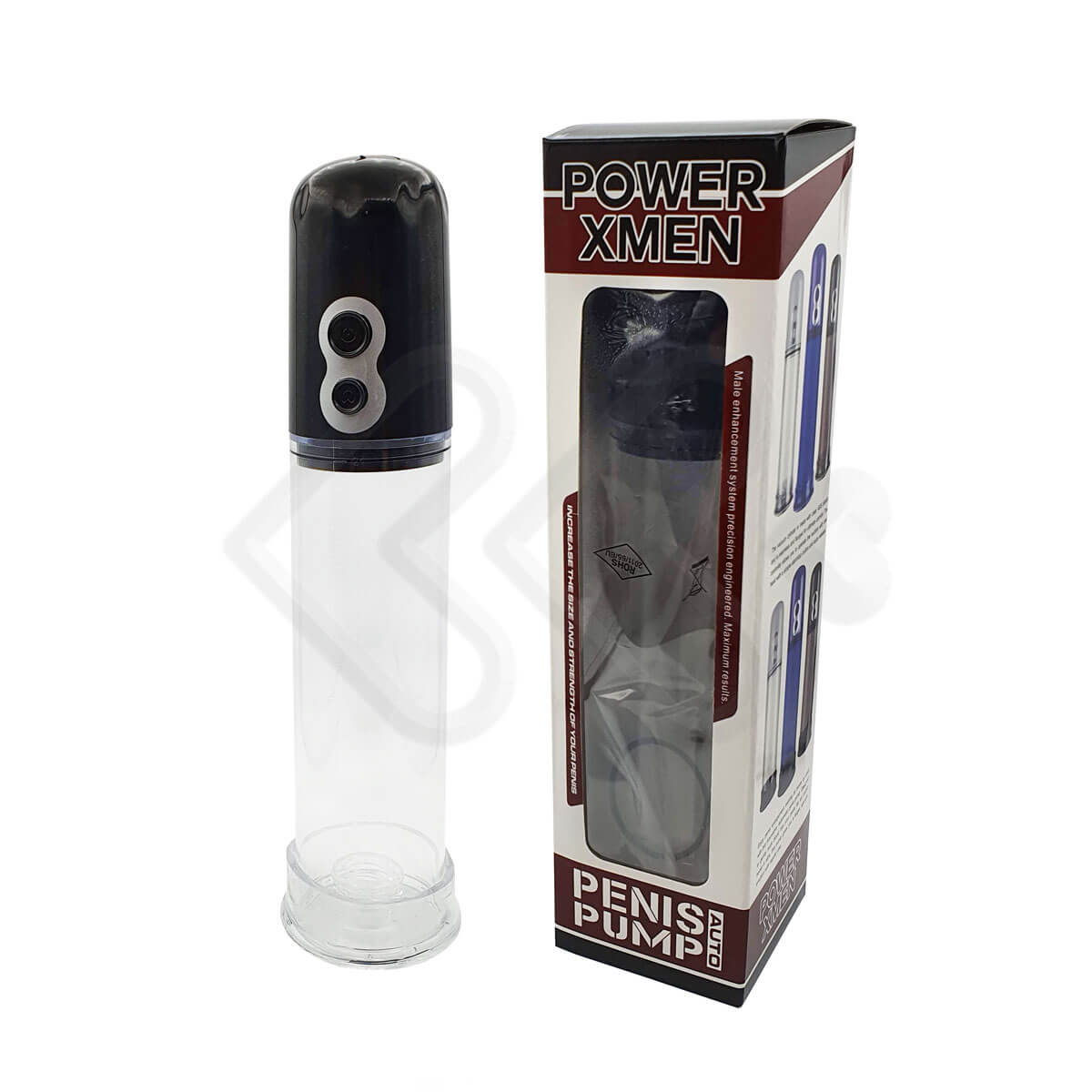 Bomba peniana elétrica "Free Space Man" em ABS atóxico com sucção automática e descompressão de ar. Possui tubo e anel de encaixe em silicone.