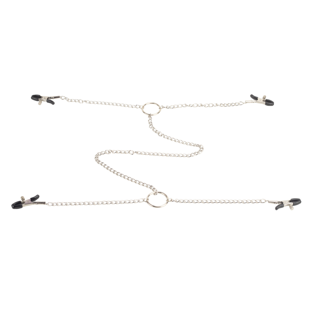 Grampo para Mamilos com Correntes foi feito para quem busca intensidade e controle. Com quatro presilhas ajustáveis e correntes metálicas, conecta diferentes pontos do corpo, criando um jogo entre dor e prazer que desperta todos os sentidos. Ficou curioso? Vem saber mais!